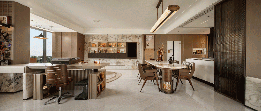 除此之外,保利天奕公区部分区域还采用了名贵奢石,豪宅专属定制化的符号设计,给到业主极强的身份感和标签感。