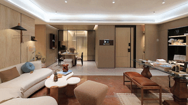 室内空间:引入了全屋智能家居系统,能通过App、中控、语音三大方式,调节全屋智能家居,包括客厅灯光、空调、地暖、新风、客厅和主卧窗帘等场景。