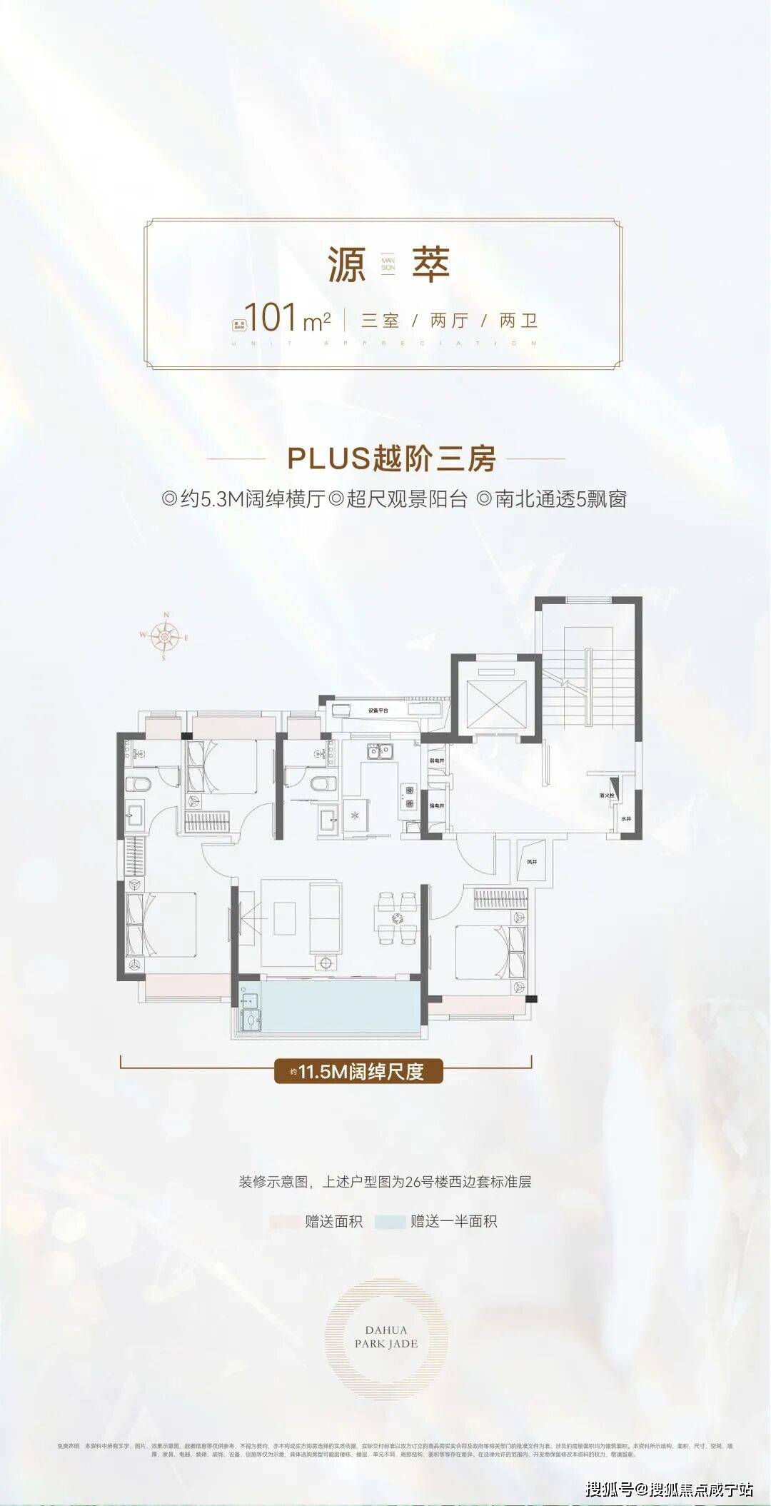 售楼处电话:✅︎✅︎✅宽奢主义 全维进阶舒享101㎡越阶三房:约5.3M阔尺横厅/约11.5M南向面宽,宽纳聚会欢愉