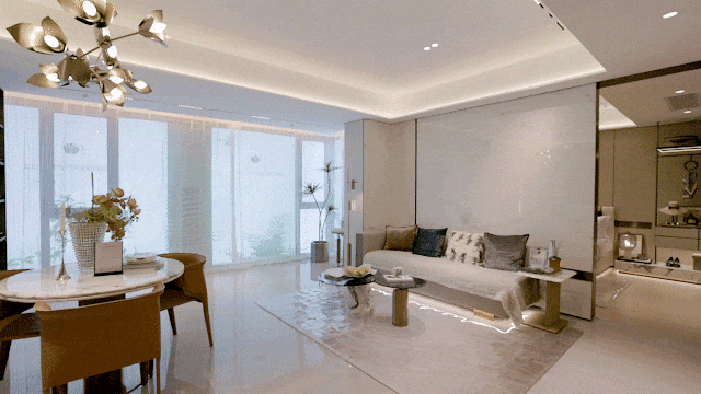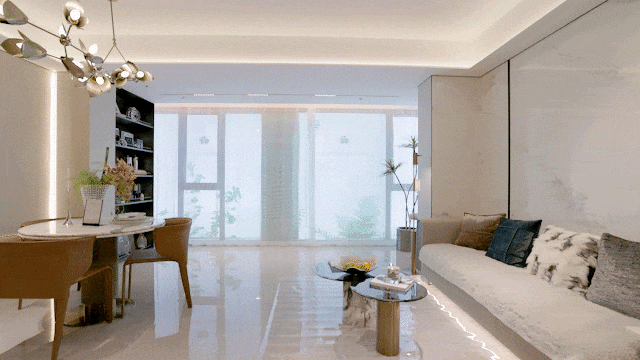 虚实结合,利用2层柏翠造型铝线条错拼而成,更显精致;这样的设计和用料,在600万级的新房市场中,简直是降维打击。