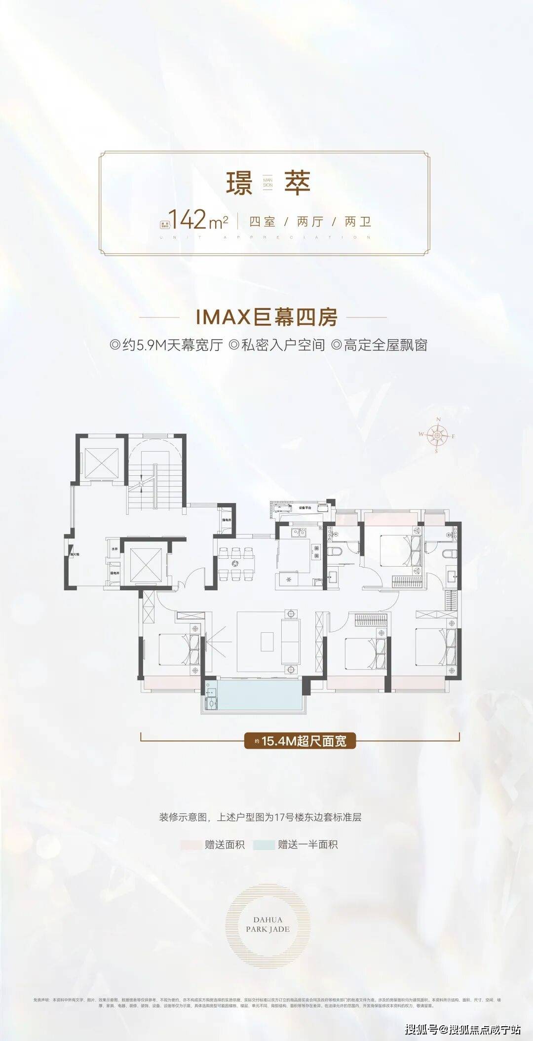 142㎡天幕四房:约5.9M阔尺宽厅/约15.4M南向面宽,宽载巨幕光景