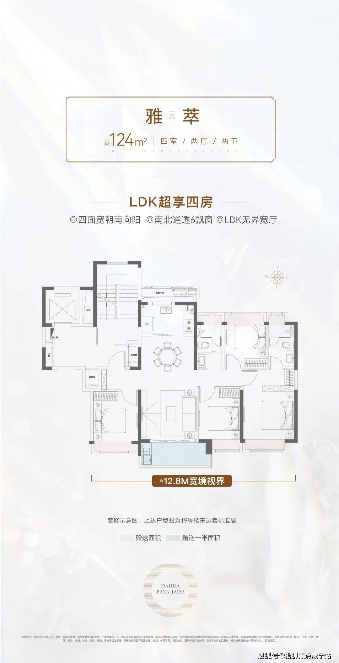 124㎡超享四房:约3.6M阔尺宽厅/约12.8M南向面宽,宽享温暖四季
