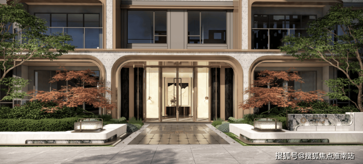 美学外立面,大宽幅玻璃幕墙,以海派弧线、大宽幅玻璃幕墙打造鎏金立面,极具辨识度,光影流转间尽显现代美学张力。