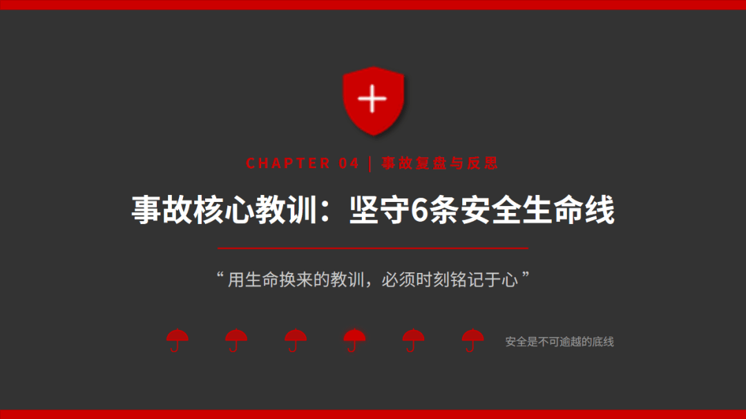 这起惨痛的事故,为我们留下了用生命换来的深刻教训。我们总结了六条必须坚守的“生命线”,这些原则是确保安全生产的底线,任何时候都不能逾越。接下来,我将逐一为大家解读这六条生命线的具体含义与执行标准。