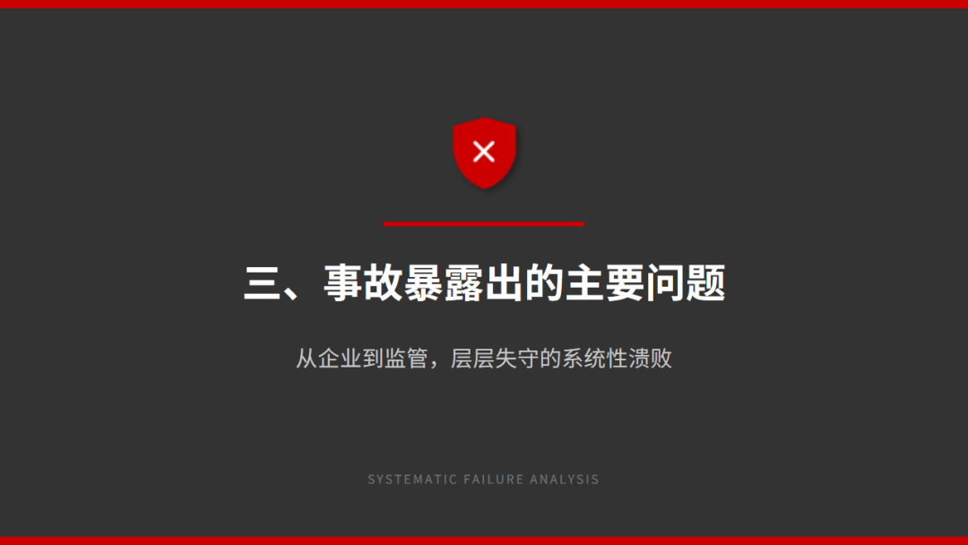 通过刚才的分析,我们可以看到,这起事故的发生并非偶然。它暴露出了从企业主体责任,到设计、施工、监理等各个环节,再到政府监管部门,都存在着严重的问题。接下来,我们将系统性地梳理这些问题。