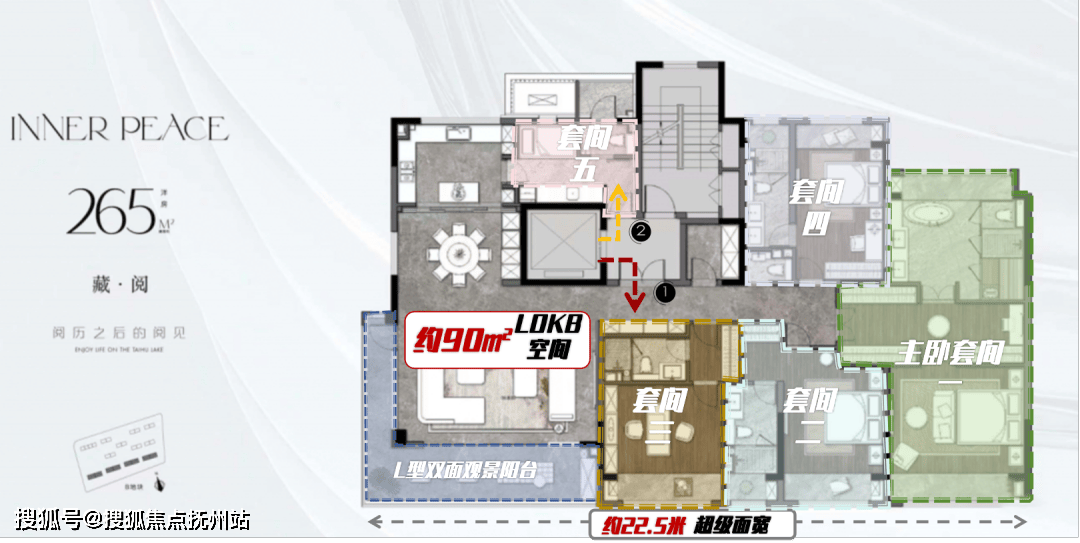 约22.5米南向面宽+270°L型环幕阳台+约90㎡LDKB一体化,实际感观比想象中更惊艳!