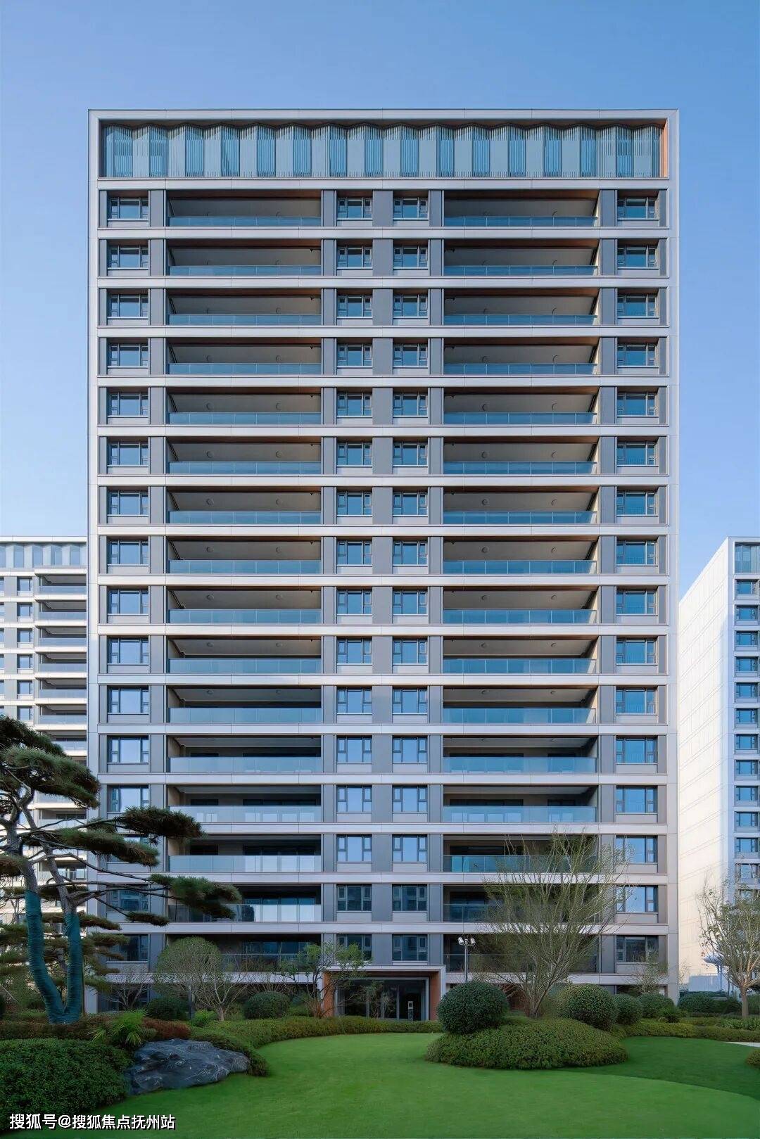 项目将“隐逸美学”贯穿始终。建筑上,太湖银铝板与玻璃幕墙的现代组合,小高层顶部采用优雅的折面设计,勾勒出简约而富有质感的天际线。