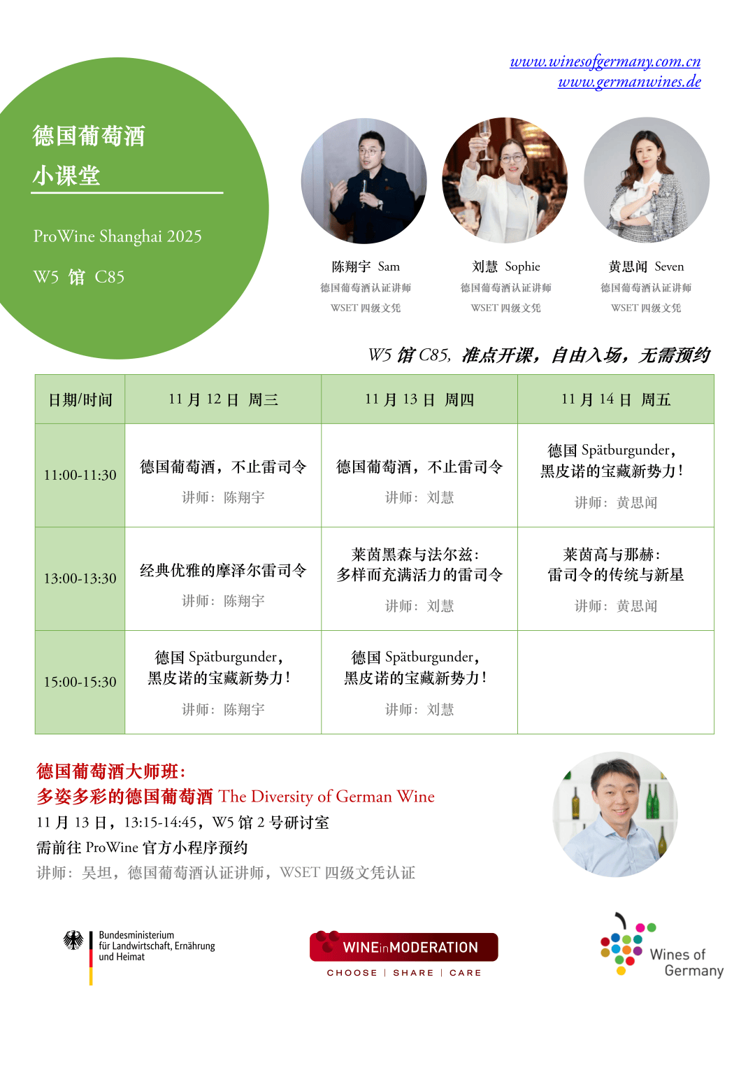 今年ProWine迎来了史上最大的德国展团:360平方米、51个酒庄、10个产区,不少酒庄还是第一次来中国。展会期间,《德国葡萄酒小课堂》也同步开启,一站式品鉴德国风土魅力!