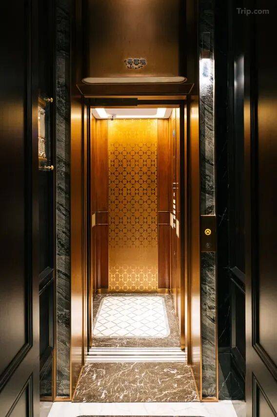 步入酒店颇有些仪式感,铺着地毯的台阶,大门缓缓打开,走进的是一个充满时代印记的空间。一改大家对新酒店宽敞明亮的固有印象,巴公邸稳重的深色走廊曲曲折折,暖黄色的灯光覆盖在空间的必要处,揭示着它曾经作为高级公寓的过往,也传达出私密而小众的奢华感。