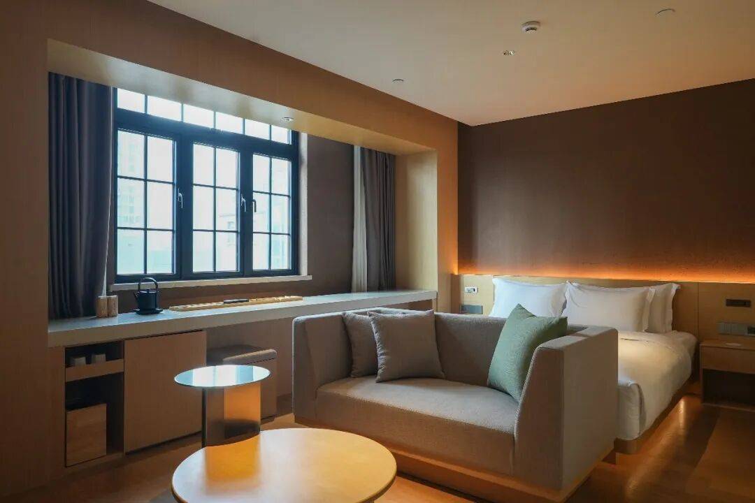 酒店的客房延续着公共区域简约时尚的风格,以原木与灰白色系为主色调,洋溢着青春气息。安坻客房充分利用空间美学,选择天然材料与高品质的客用品,带来高效、温馨、舒适的住宿体验。