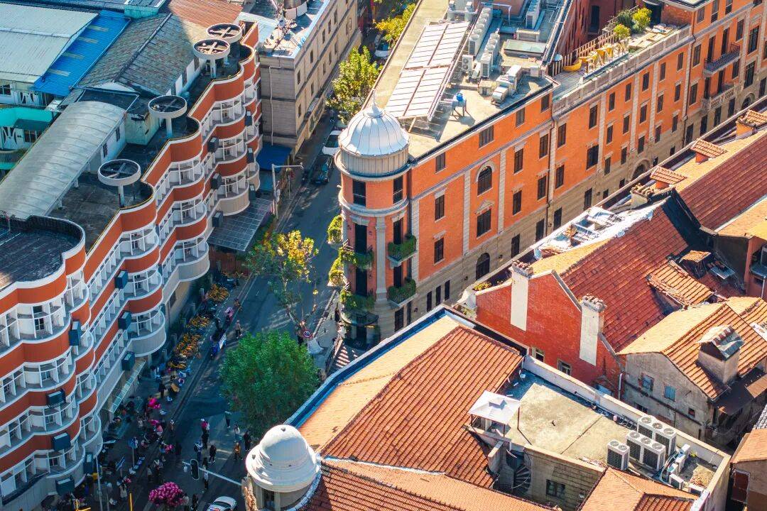 一栋宛如上海武康大楼造型的建筑,甚至比前者建造年份更久远,本身就自带“红”的属性。1910年,俄国商人巴诺夫兄弟建成了巴公房子,靠近黎黄陂路的三角形建筑被称为“小巴公”,靠近兰陵路一端的多边形建筑被称为“大巴公”。之后几经辗转,如今成为了武汉文旅集团旗下的精品酒店。